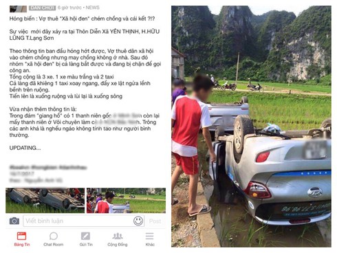 Nhưng nhóm côn đồ cùng Nhung và bạn trai đã lên ô tô cố thủ. Một số người dân xô đẩy chiếc ô tô nhóm đối tượng đang cố thủ nhằm mục đích đe dọa. Hai chiếc ô tô sau đó bị nghiêng rơi xuống ruộng và lật ngửa.