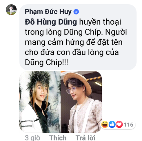 Ai ngờ đâu cậu em Đức Huy lại được dịp vào "xuyên tạc" cái tên này theo hướng cực hài hước. "Hoàng tử Ả rập" để lại bình luận: "Cháu tên: TiTi (được đặt theo tên trưởng nhóm HKT, nhóm nhạc thần tượng của bố Dũng Chíp)".