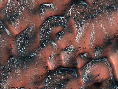 Và khi lớp băng "khô" trên sao Hỏa tiếp xúc với mặt trời sẽ tạo nên những đường nét độc đáo trên bề mặt đất đá khô cằn của hành tinh này.