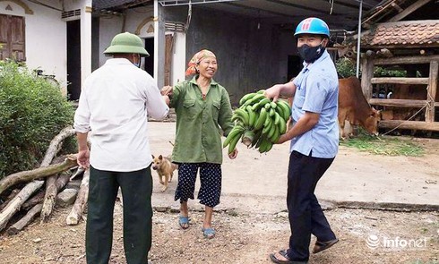Nhiều gia đình quyên góp gạo, chuối...để ủng hộ cho quỹ phòng chống dịch ở xã Đức Sơn. |
