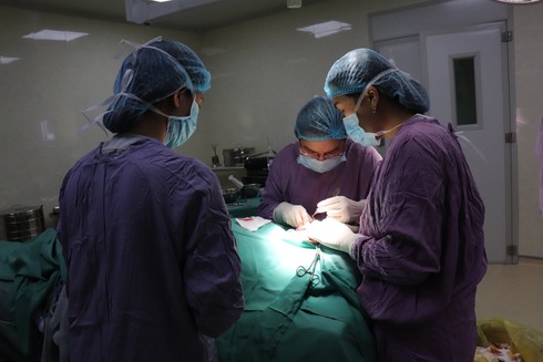 Các bác sĩ đang phẫu thuật cho bệnh nhân. |