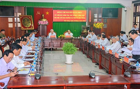 Thủ tướng Nguyễn Xuân Phúc làm việc với lãnh đạo chủ chốt tỉnh Sóc Trăng. |