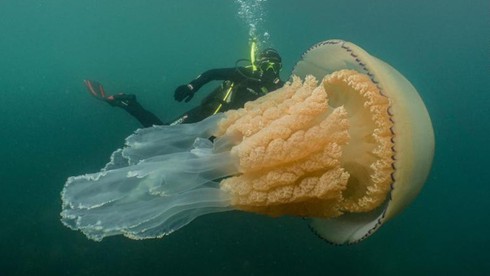 Bất ngờ đụng độ với sứa khổng lồ ngoài khơi bờ biển Anh. |