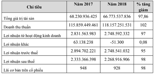 Kết quả kinh doanh năm 2017 và 2018 của Diêm Thống Nhất. Nguồn: BCTN năm 2018. |