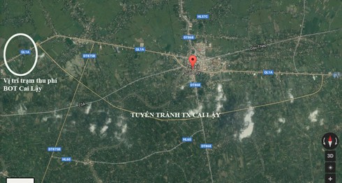Vị trí nơi đặt trạm thu phí BOT Cai Lậy |