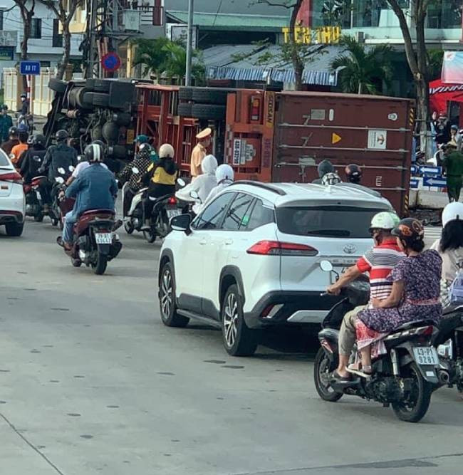 'Đứng tim' cảnh xe container ôm cua gấp, lật nhào ngay ngã tư ở Đà Nẵng