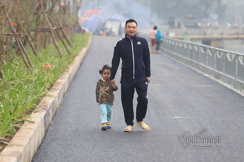 Ông Nguyễn Thanh Tân (77 tuổi) chia sẻ rất thích tuyến đường này: "Nhà tôi bên kia sông đường Nguyễn Ngọc Vũ, trước kia muốn đi bộ, thể dục hay cho các cháu không gian vui chơi khá khó khăn vì không có chỗ, công viên thì xa. Nay con đường mới mở, chiều nào tôi cũng ra đây thể dục 30 phút, rất rộng rãi".