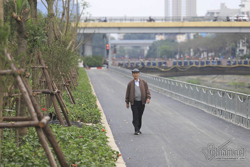 Đoạn gần cầu Trung Hòa, cầu Mọc, người dân đã có thể vào để vui chơi, đi bộ hoặc tập thể dục