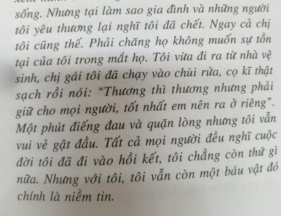 Nghe lời người anh, Quý bắt đầu những trang viết về cuộc đời mình. “Viết ra đến đâu, em thấy mình được làm người đến đấy. Khi em kết thúc trang viết cũng là lúc em không còn oán hận một ai hết”.