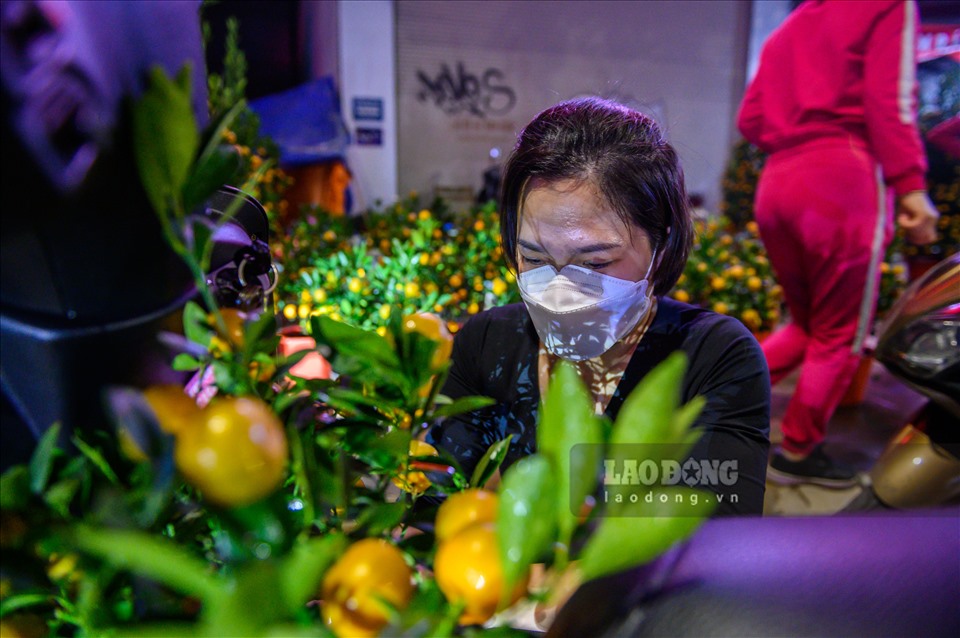 Sợ dịch, nên năm nay chị Vân chỉ bán những chậu quất giá tầm trung, cây trung bình và nhỏ. "Năm nay giá thị trường ít có sự thay đổi, dịch khó khăn nên nhiều khách đề nghị bớt tiền mà mình cũng không dám bớt", chị Vân nói. |