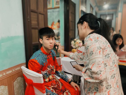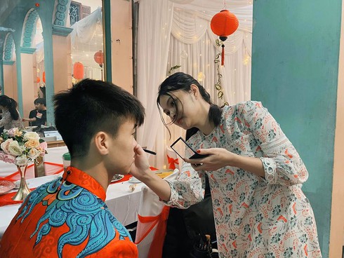 Theo những hình ảnh được chia sẻ từ Facebook cá nhân của chuyên gia trang điểm Giang Phạm đăng tải, trung vệ điển trai của CLB Hà Nội, ĐT quốc gia Việt Nam tỏ ra khá hồi hộp.