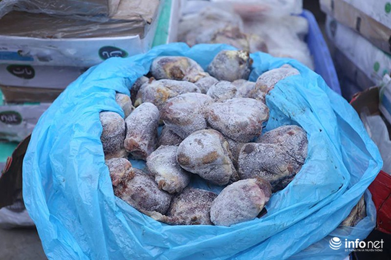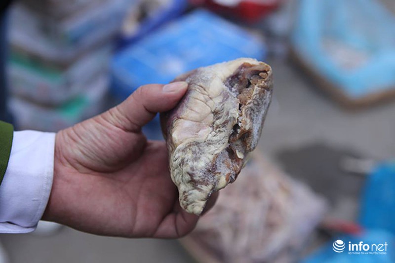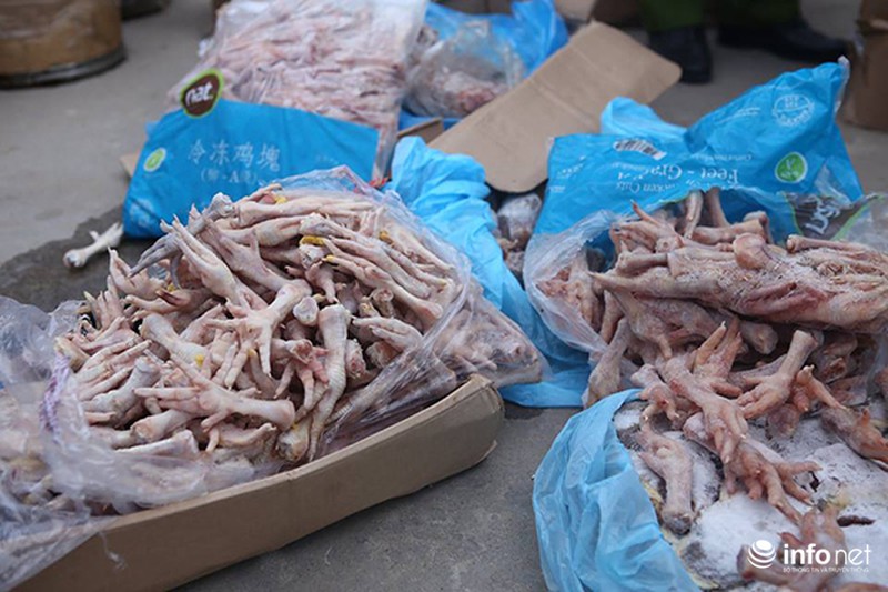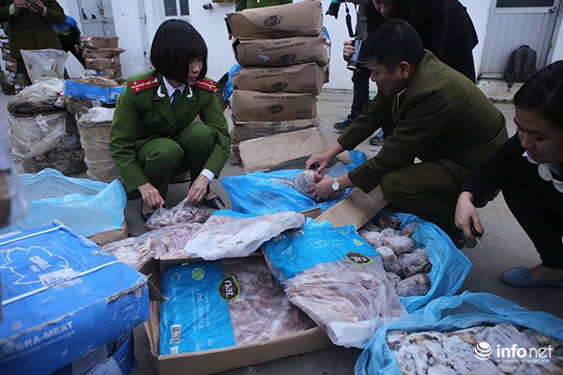 Đại diện công ty khai nhận, toàn bộ số hàng hóa này đang chuẩn bị tuồn ra thị trường Hà Nội bán trong dịp Tết nguyên đán. Thiếu tá Ngô Anh Thuấn – Đội 5 Phòng Cảnh sát môi trường PC49 cho biết, qua kiểm tra thực tế, cơ quan chức năng đã xác định lô hàng đông lạnh nói trên đều hết hạn sử dụng. Phần lớn chân gà, tim lợn ghi bao bì nhập khẩu từ Mỹ, Brazil và đang trong quá trình phân hủy, bốc mùi hôi thối.