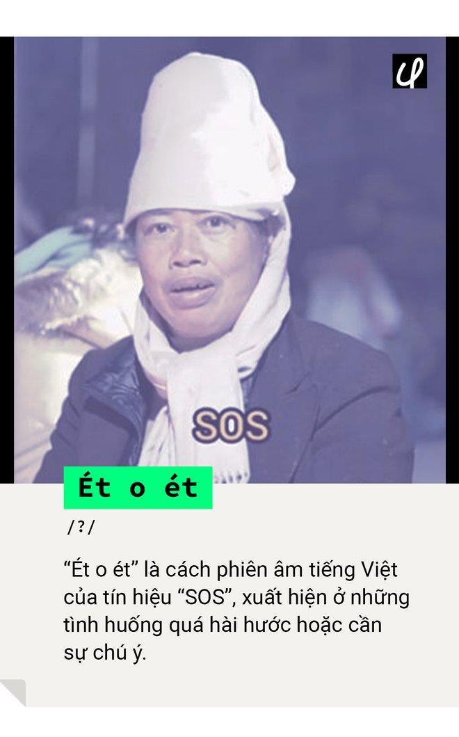 “Ét o ét” là cách phiên âm tiếng Việt của tín hiệu “SOS”, được Gen Z sử dụng thay cho biểu hiện "cứu với" ở những tình huống rất hài hước, hoặc báo hiệu trường hợp cần sự chú ý.
