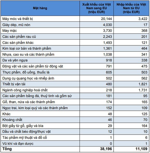 Các mặt hàng Việt Nam xuất sang EU và nhập từ EU. Nguồn:European Commision. |