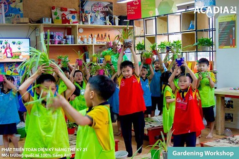 Bên cạnh đó, hệ song ngữ Acadia21 là sự hợp tác độc quyền và chiến lược của Everest School và trung tâm nghiên cứu Headstart Vietnam. Hàng ngày, sau những tiết học chương trình chuẩn của sở giáo dục và đào tạo Hà Nội vào buổi sáng (trong đó, 5/12 tiết tiếng Anh một tuần học với giáo viên bản ngữ), các học sinh hệ Acadia21 học buổi chiều tại không gian “Nước Anh thu nhỏ” – The Little UK với diện tích 800m2 và sử dụng 100% tiếng Anh. Sau một năm học, học sinh có thể tư duy bằng tiếng Anh để tiếp tục học các chương trình học của của bộ giáo dục Anh như người bản xứ. Giáo trình sử dụng trong chương trình Acadia21 được soạn thảo chi tiết và triển khai bởi đội ngũ chuyên gia quốc tế, dựa trên những nghiên cứu mới nhất về khoa học não bộ, thấu hiểu kĩ năng thế kỉ 21 giúp học sinh vươn tới các đỉnh cao thành công trong cuộc sống, phát triển tiếng Anh như tiếng mẹ đẻ, phát triển kĩ năng xã hội, phát triển tư duy.
