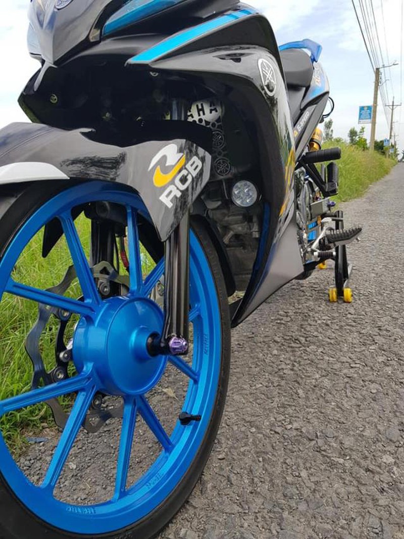 Dàn chân được dọn lại ước tính giá trị phải hơn 15 triệu đồng bao gồm cặpmâm Daytonamà biết bao tay chơi xe kiểng thèm khác, bên cạnh là cặp đĩa Galfer đi kèm cùngheo dầu Brembologo lớn 2 pis đối xứng được làm pat cnc để thuận tiện hơn trong việc tháo ráp và canh chỉnh. |