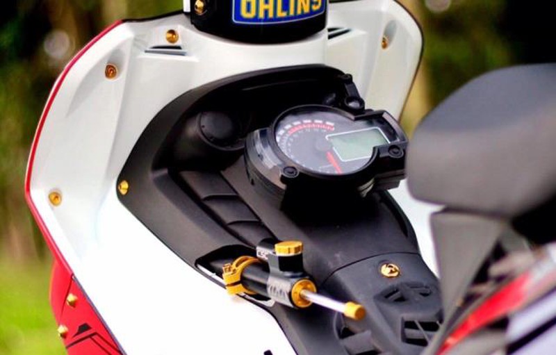 Phía dưới trang bị thêm đồng hồ RX2N để theo dõi vòng tua dễ hơn cũng như các thông số cụ thể về báo bình, nhiệt độ, thời gian... Do là mẫu xe thiên về tốc độ nên chủ xe đã trang bị trợ lực sườn Hyperpro giúp xe ổn định tay lái hơn khi chạm ngưỡng tốc độ cao. |