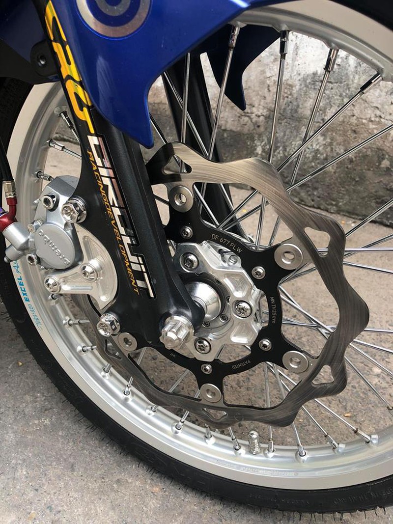 Dàn chân mỏng manh với niềng nhôm siêu cứng đến từ thương hiệu Excel, hệ thống phanh được nâng cấp vớiđĩa Galferkết hợp cùng heo Brembo 1pis. |