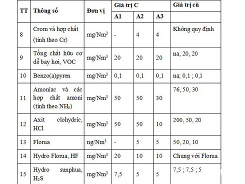 Dưới đây là bảng so sánh giá trị ngưỡng đề xuất mới và cũ trong QCVN 51. Ta thấy phần lớn các con số ở cột giá trị cũ cao hơn giá trị mới. Một số thông số trước đó không quy định thì nay đã có quy định chi tiết hơn. Đó chính là sự thắt chặt của QCVN 51 mới so với cũ.