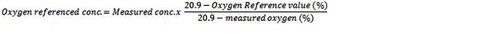 Hàm lượng khí đã điều chỉnh theo oxy = hàm lượng đo được x (21- hàm lượng ô xy tham chiếu)/(21-hàm lượng ô xy đo được)
