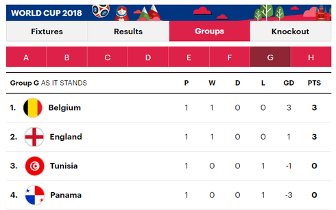 Những chú sư tử Anh sẽ có trận tiếp theo gặp đội tuyển Panama, đội vừa để thua 0-3 trước Bỉ, vào 19h ngày 24/6 tới.