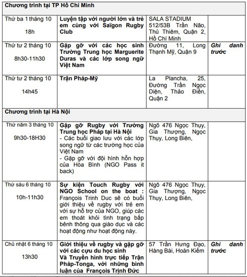 Từ 2/10 tại TP Hồ Chí Minh và từ 3-6/10 tại Hà Nội, François Trịnh Đức về Việt Nam, chia sẻ niềm đam mê thể thao của mình với giới trẻ, trên mảnh đất quê hương của mình. Đây cũng là thời điểm giải Vô địch bóng bầu dục thế giới đang diễn ra sôi nổi và tiến tới giải Vô địch bóng bầu dục thế giới lần tiếp theo sẽ được tổ chức tại Pháp vào năm 2023.