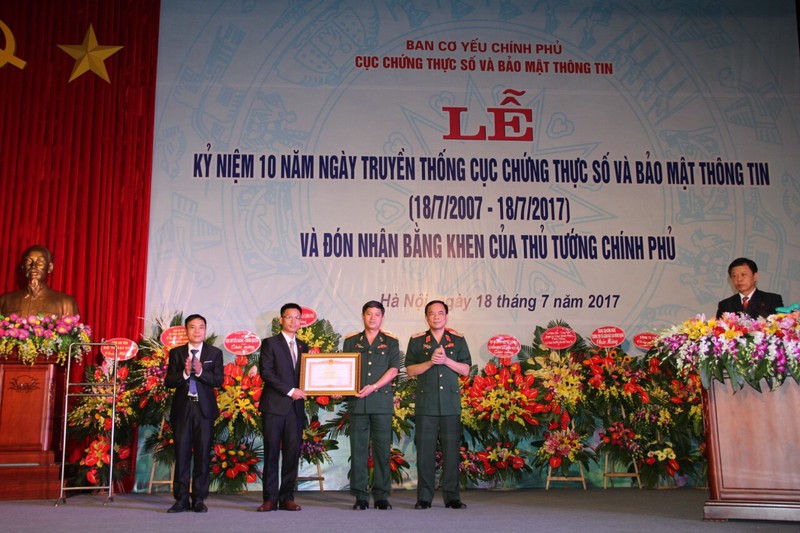 Ngày 18/7/2017, tại Hà Nội, Cục Chứng thực số và Bảo mật thông tin, Ban Cơ yếu Chính phủ đã tổ chức Lễ kỷ niệm 10 năm ngày truyền thống của Cục (18/7/2007-18/7/2017) và đón nhận Bằng khen của Thủ tướng Chính phủ.
