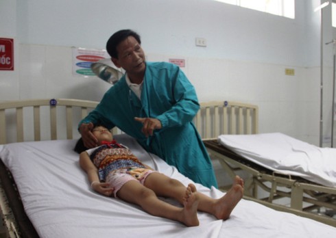 Theo bác sĩ Giám, khoảng 9h giờ cùng ngày, Bệnh viện đa khoa Quảng Nam tiếp nhận bệnh nhân Ngô Thị Tường Vy (5 tuổi, ngụ TP Tam Kỳ, Quảng Nam) nhập viện trong tình trạng khó thở, nuốt vướng, nôn ói.