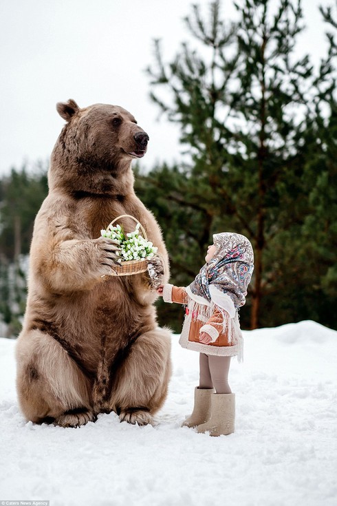 Bộ ảnh chụp gấu Stepan bên cạnh những em bé hiện đang được cư gân mạng vô cùng yêu thích. Bộ ảnh khiến người xem tưởng lạc vào trong truyện cổ tích.