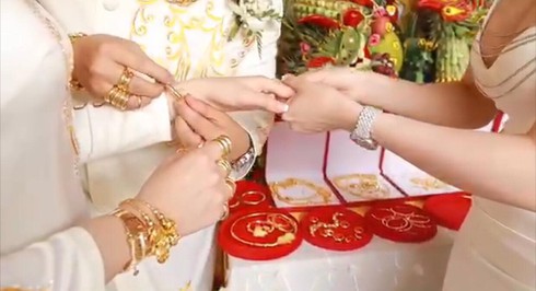 49 cây vàng được đeo lên cổ, tay cho đôi vợ chồng trẻ. |