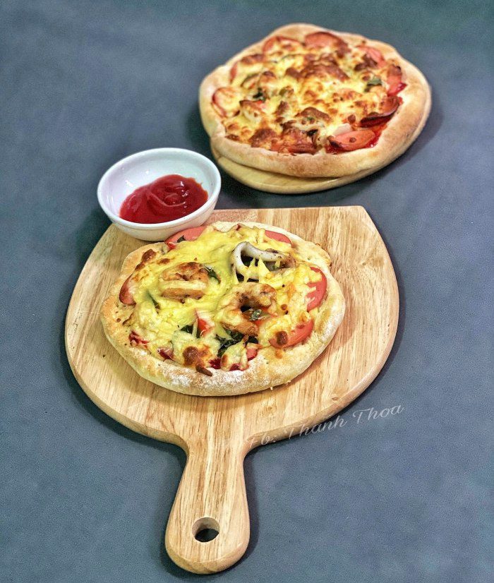 - Tôm sú - Mực ống - Xúc xích - Hành tây - Ớt chuông - Phô mai Mozzarella - Sốt cà chua (hoặc Tương cà)