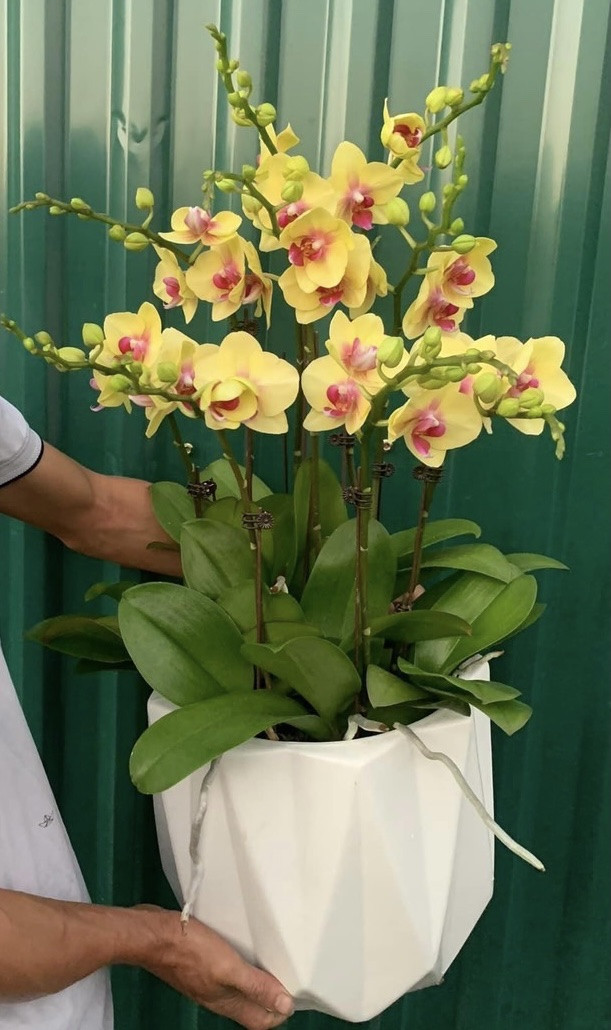 “Lan hồ điệp tôi bán đủ size phục vụ đa dạng nhu cầu của khách. Lan size mini có giá khoảng 120.000-130.000 đồng/cây, lan size đại giá 200.000 – 220.000 đồng/cây. Đến thời điểm này, tôi đã bán được cả nghìn cây lan hồ điệp.