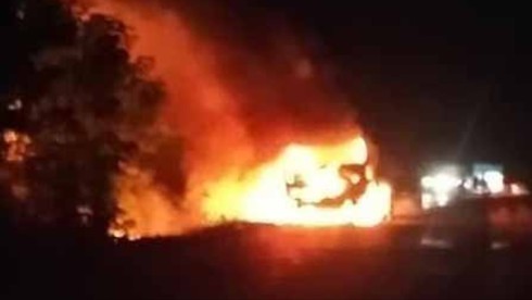 Ngọn lửa nhanh chóng cháy bao trùm chiếc xe bồn, tài xế may mắn thoát khỏi xe nhưng cũng bị thương và được người dân đưa đến Bệnh xá quân dân y Công ty 715 để chữa trị ngay sau đó.