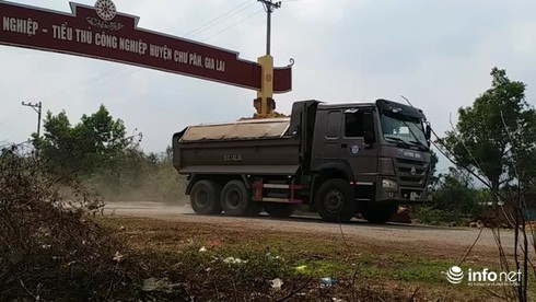 Ngoài ra, một số lượng lớn xe ra vào vận chuyển đất trên tuyến đường Hồ Chí Minh (đoạn giao nhau với CCN huyện Chư Păh đi khoảng gần 3km về hướng thành phố Plei Ku) nhưng hầu hết các phương tiện này không được che phủ bạt, nhiều xe còn cơi nới thành thùng để chở được đất nhiều hơn.