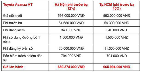 Giá lăn bánh Toyota Avanza tại Việt Nam