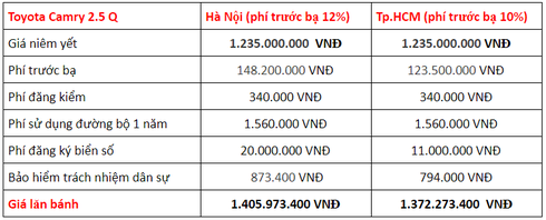 Giá lăn bánh Toyota Camry 2019 tại Việt Nam