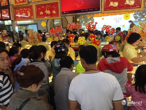 Những tiệm vàng có thương hiệu tấp nập khách mua vàng sáng mùng 10 tháng Giêng. |