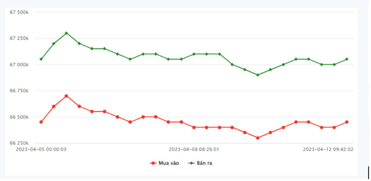 SJC TP.HCM: 66.400.000 đồng/lượng - 67.000.000 đồng/lượng
