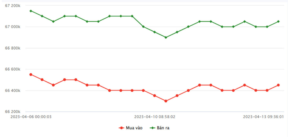 SJC TP.HCM: 66.400.000 đồng/lượng - 67.000.000 đồng/lượng
