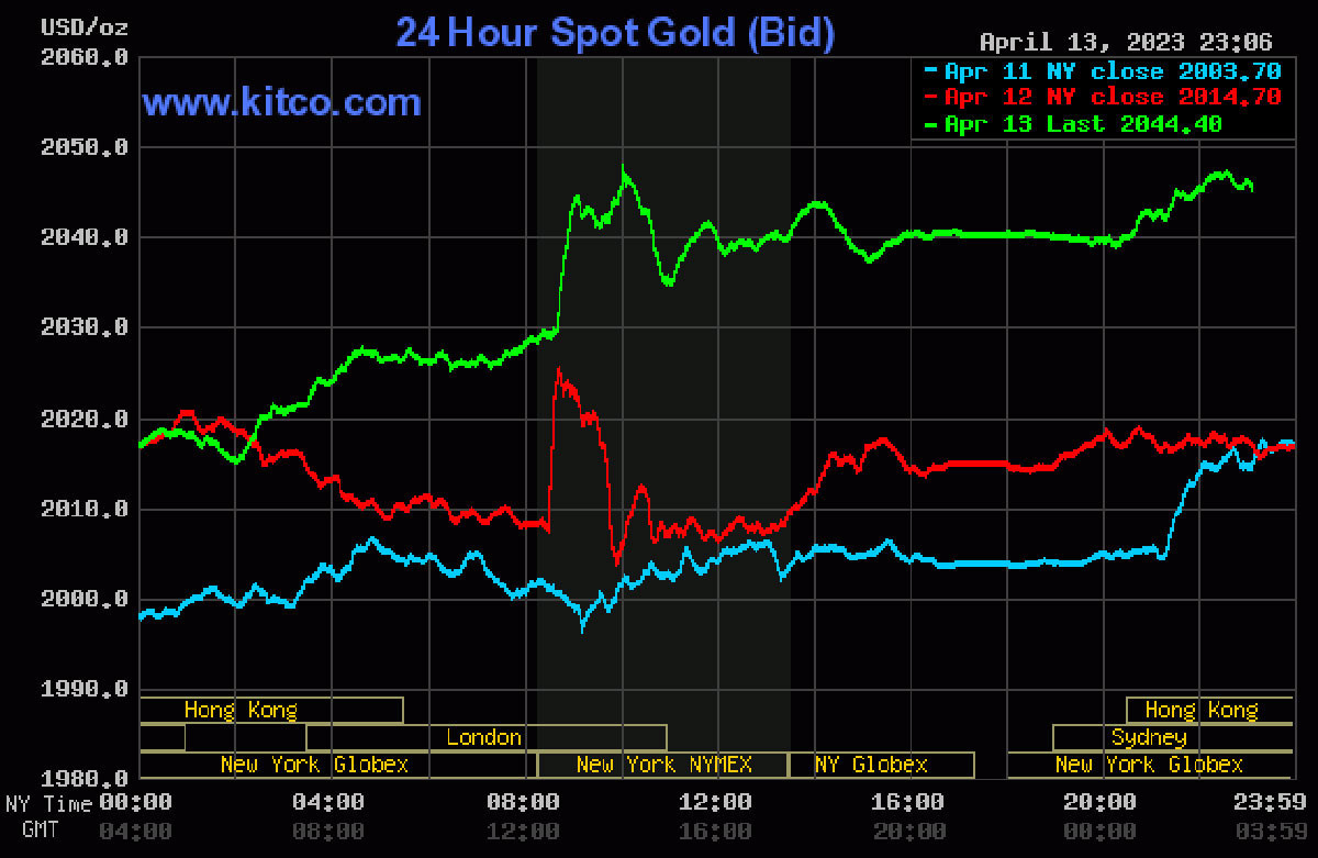 Trên thị trường vàng thế giới, giá vàng giao ngay 13/4 giao dịch ở mức 2.029 USD/ounce. Giá vàng kỳ hạn giao dịch ở mức 2.030 USD/ounce.