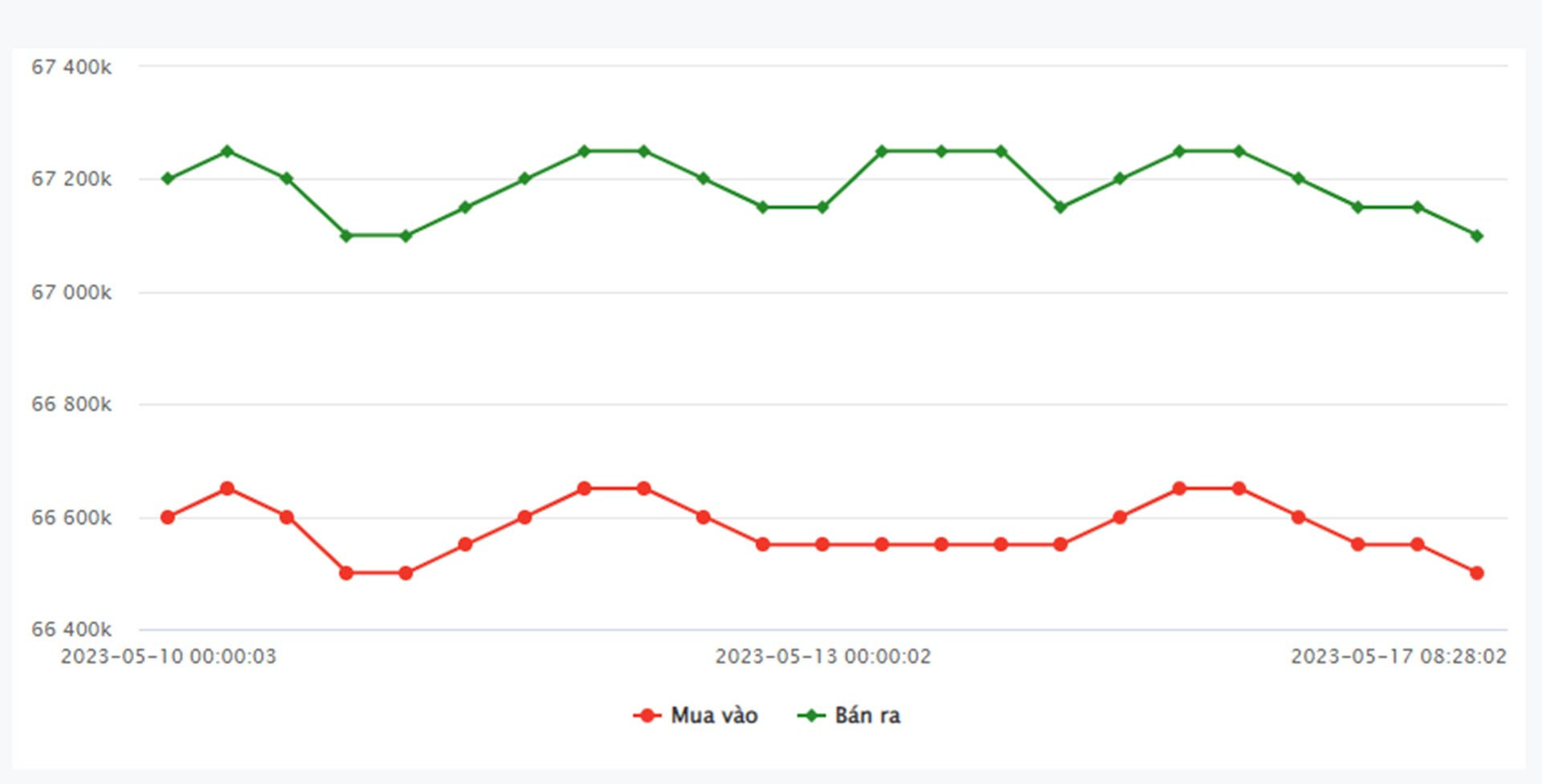 SJC Hà Nội: 66.550.000 đồng/lượng - 67.170.000 đồng/lượng
