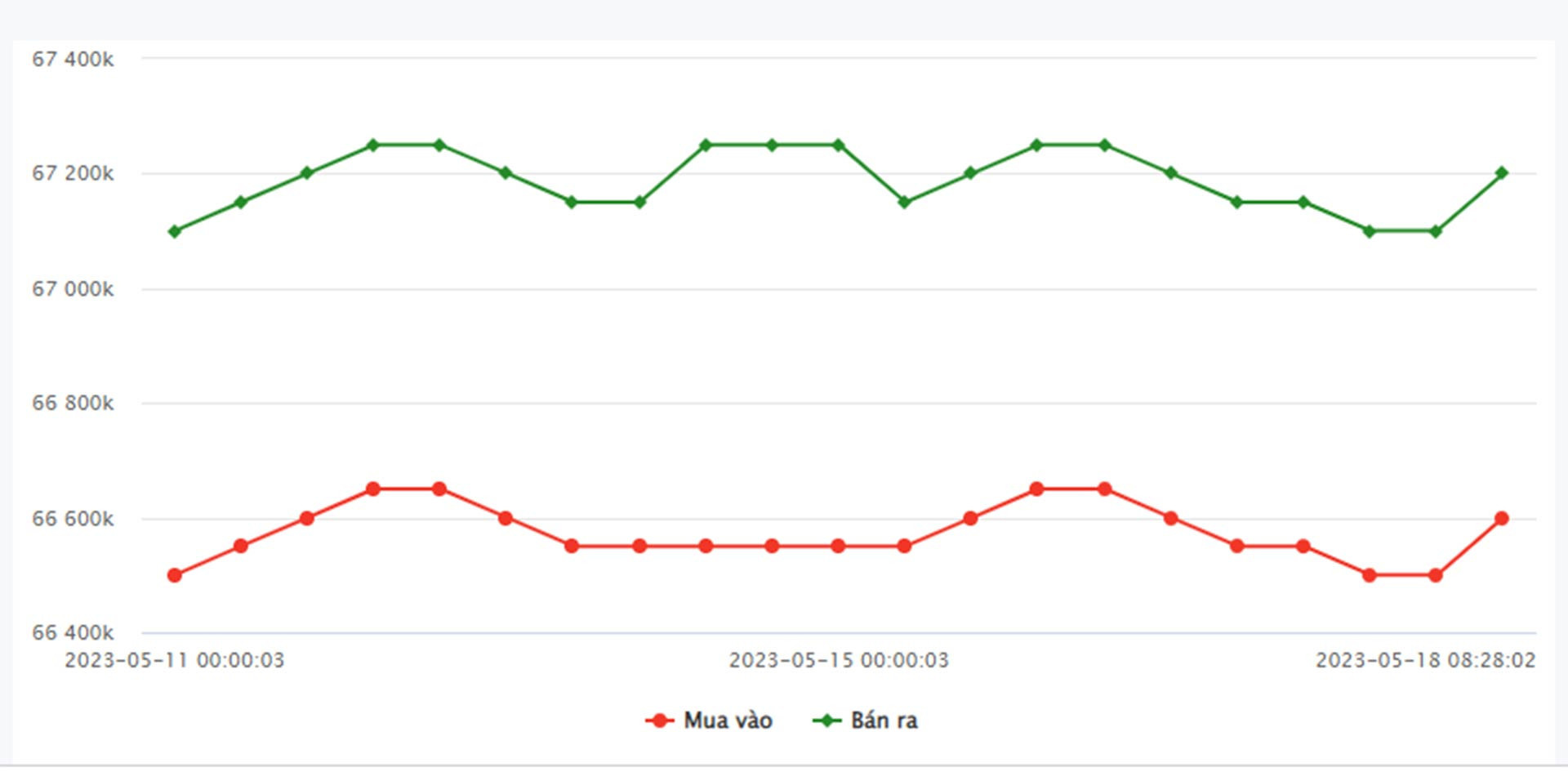 SJC Hà Nội: 66.500.000 đồng/lượng - 67.120.000 đồng/lượng