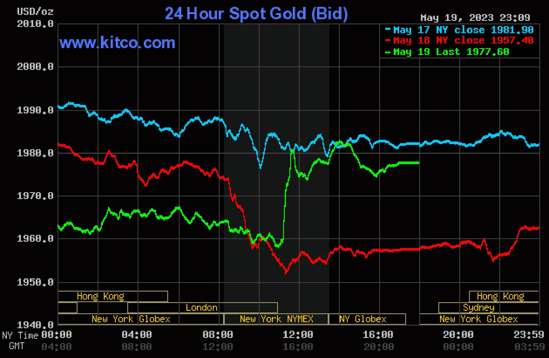 Lúc 10h06' hôm nay (ngày 20/5, giờ Việt Nam), giá vàng thế giới giao ngay đứng quanh ngưỡng 1.977,6 USD/ounce, tăng 15,6 USD/ounce so với đêm qua. Giá vàng giao tương lai tháng 6 trên sàn Comex New York ở mức 2.000,3 USD/ounce, tăng 37,3 USD/ounce so với đêm qua.