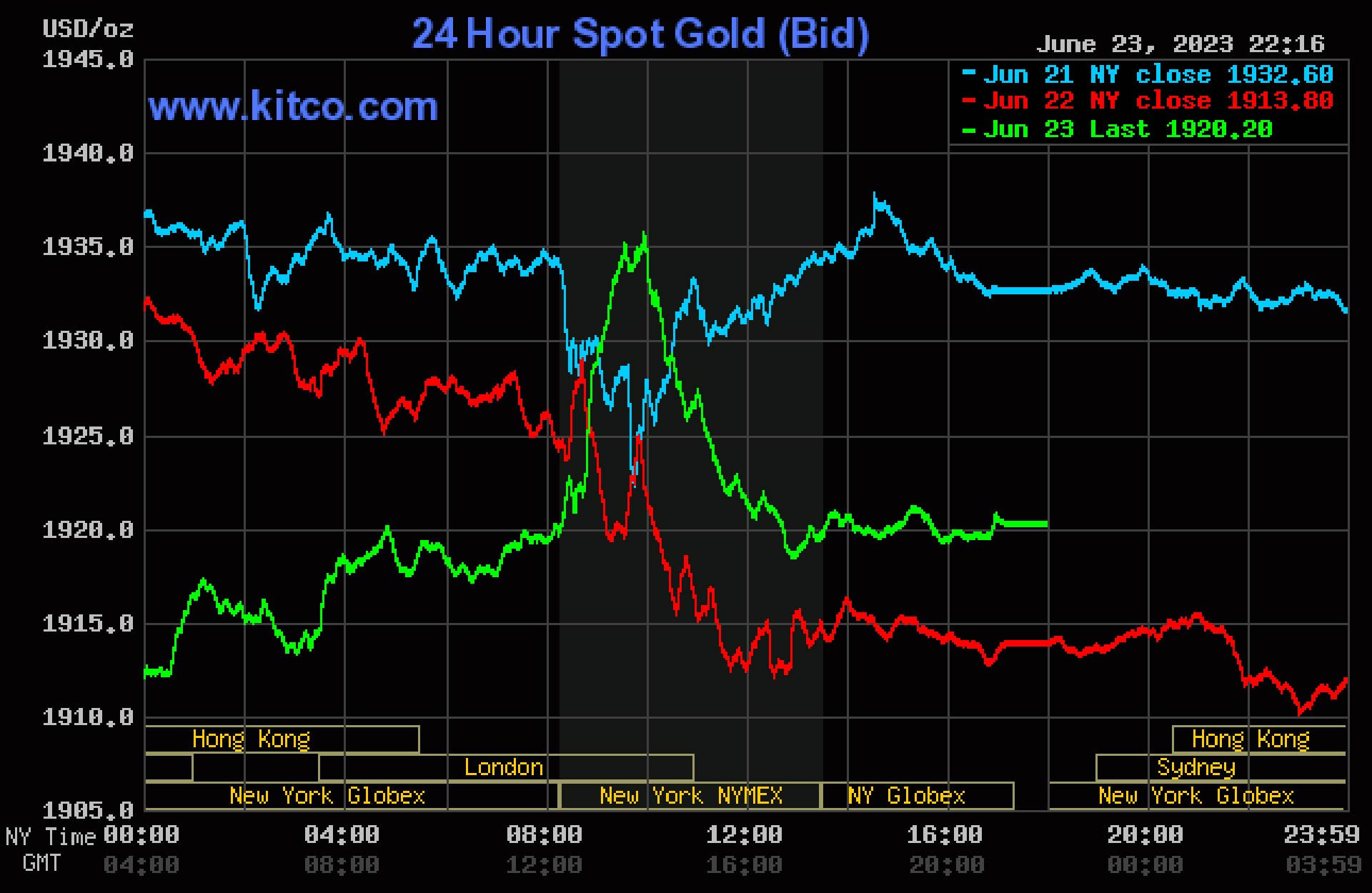 Trên thị trường thế giới, giá vàng giao ngay 23/6 (theo giờ Việt Nam) giao dịch ở mức 1.934 USD/ounce.