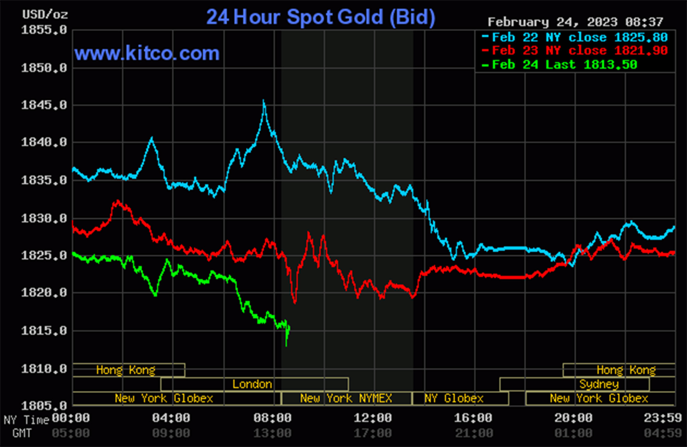 Tới 9h39' hôm nay (ngày 25/2, giờ Việt Nam), giá vàng thế giới giao ngay đứng quanh ngưỡng 1.811,2 USD/ounce, giảm 3,8 USD/ounce so với đêm qua. Giá vàng giao tương lai tháng 4 trên sàn Comex New York ở mức 1.817,2 USD/ounce, tăng 1,2 USD/ounce so với đêm qua.