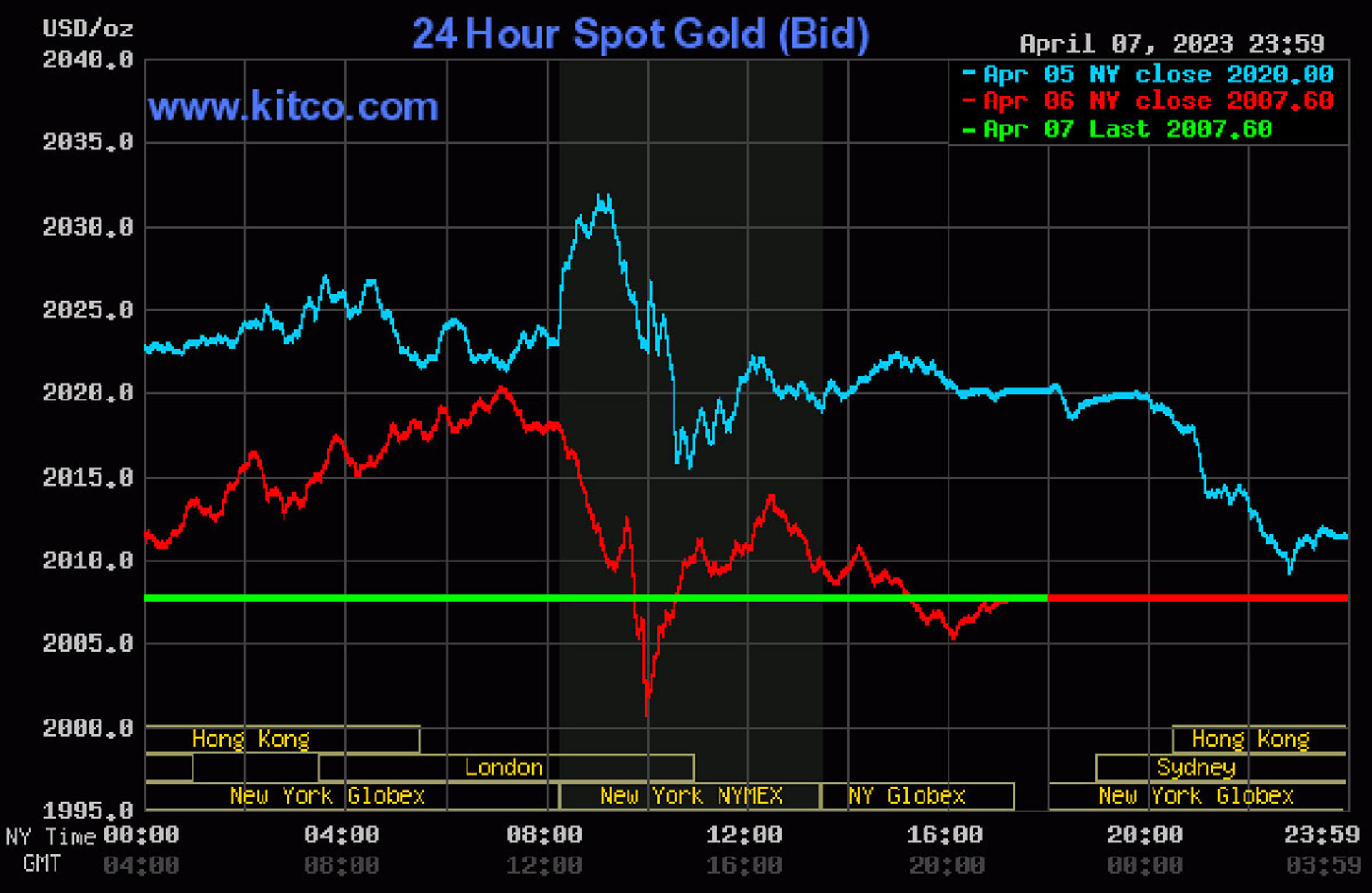 Trên thị trường vàng thế giới, giá vàng giao ngay 7/4 giao dịch ở mức 2.007 USD/ounce. Giá vàng kỳ hạn giao dịch ở mức 2.008 USD/ounce.