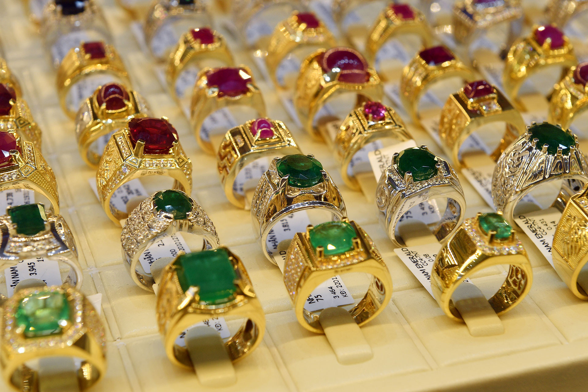 Chênh lệch giữa giá mua vào và bán ra của vàng nhẫn trong nước dao động trong khoảng 1-1,1 triệu đồng/lượng.
