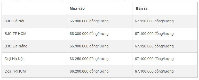 Còn giá vàng miếng của Doji tại Hà Nội chốt phiên hôm nay tăng 50 nghìn đồng/lượng ở chiều mua vào nhưng lại giảm 100 nghìn đồng/lượng ở chiều bán ra; giá vàng miếng của Doji tại TP.HCM kết phiên hôm nay không đổi so với chốt phiên giao dịch cuối tuần trước.