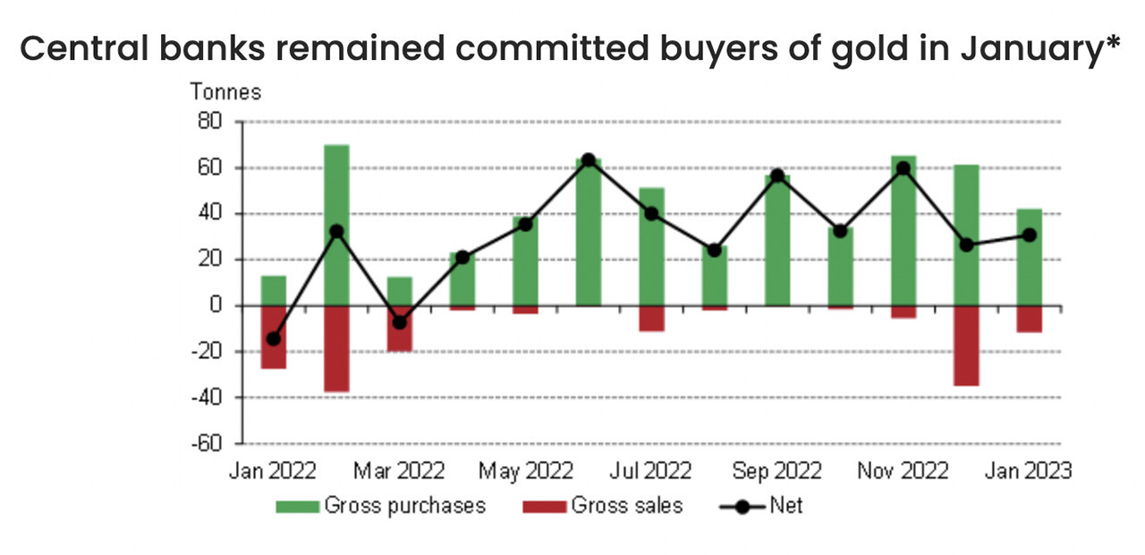 Ba ngân hàng mua nhiều nhất là Thổ Nhĩ Kỳ, Trung Quốc và Kazakhstan. Thổ Nhĩ Kỳ là nước mua vàng nhiều nhất năm 2022. Trong tháng 1, ngân hàng trung ương Thổ Nhĩ Kỳ mua 23 tấn vàng, nâng tổng dự trữ vàng lên 565 tấn.