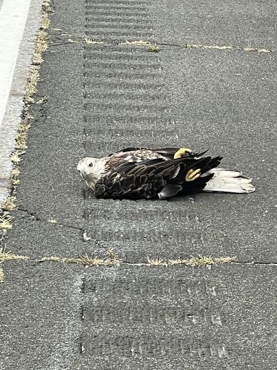 Con đại bàng đang bay ở tầm thấp thì lao vào đầu một chiếc xe tải trên đường cao tốc Sunrise, New York, Mỹ. Con đại bàng có vẻ bị thương và nằm ở bên đường.